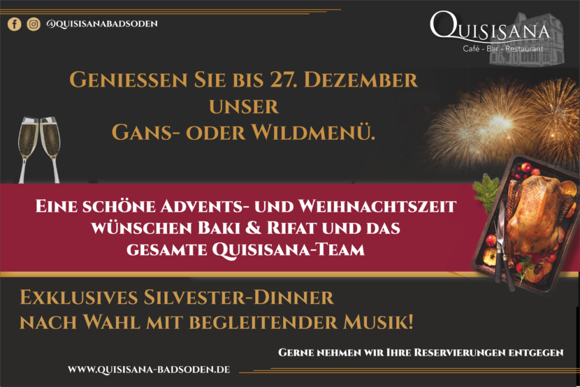 Gans- & Wildmenü bis 27. Dezember · Silvester-Dinner mit Musik